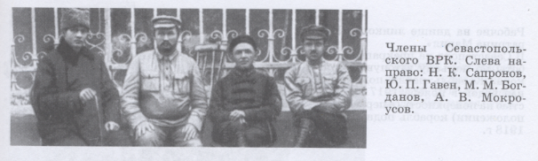 В книге Алтабаевой Е.Б. Смутное время: Севастополь в 1917 - 1920 годах, "Телескоп", Севастополь, 2004 г., изданной как учебное пособие по истории Крыма и Севастополя представлены фотографии, правда низкого качества и мелкие, но я счел возможным представить их.