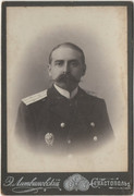 Фото после 1904 года до 1910 года (нет знака за окончание МК или МИУ). На вид 45-50 лет. Черноморец. Капитан 2 ранга (подполковник одного из Корпусов Морского ведомства). Академик. Офицерских классов не заканчивал. Версия это не строевой, просветы и опушка на погоне светлее.