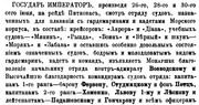 | Телеграмма министра Двора. «3 сентября, в 9 час. утра, Его Величество Государь Император с великим князем Дмитрием Павловичем, в сопровождении министра императорского Двора ген.-ад. барона Фредерикса, фл.-кап. Его Величества ген.-ад. Нилова и дежурного ф. -aд. князя Мещерского, отбыл на эскадренный миноносец «Лейтенант Шестаков», на котором был поднят брейдвымпел Его Величества Нa миноносце Его Величество был встречен: морским министром свиты к.-aд. Воеводским, начальником морских сил Черного моря к.-aд. Бострем, начальником главного морского штаба к.-ад. Яковлевым, командиром миноносца кап. II-го ранга Дмитриевым. Его Величество обходил команду, здороваясь с нею. Миноносец, снявшись с якоря, вышел в море. При выходе из рейда, отряд миноносцев, состоящих из I-го и V-гo дивизионов, быть выстроен в кильватерной колонне. При прохождении Государь Император изволил здороваться с командами миноносцев. Подойдя к Камышовой бухте, первый дивизион миноносцев по сигналу отделился и поставил минные заграждения. На миноносце «Лейтенант Шестаков» был поднят сигнал: «Государь Император изъявляет Свое удовольствие за быстро исполненный маневр»; затем оба дивизиона миноносцев в двух кильватерных колоннах взяли курс к устью реки Качи, где была произведена минная стрельба на контр-галсах по движущемуся щиту. По окончании стрельбы на миноносце «Лейтенант Шестаков» был поднят сигнал: «Государь Император изъявляет Свое удовольствие за минную стрельбу». В начале 1-го часа Его Величество изволил возвратиться на рейд, конвоируемый первым дивизионом миноносцев. По постановке на якорь Государь Император извозил осмотреть миноносец «Лейтенант Шестаков», после чего, поблагодарив офицеров и команду, отбыл на гребной барже под брейдвымпелом Его Величества на Императорскую яхту «Штандарт».