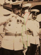 | Награды (в том числе и иностранные) - не те вещи, которые можно "предполагать". Есть высочайшее разрешение на право ношения - информация появится везде, начиная от еженедельного сборника циркуляров и приказов по личному составу МВ и заканчивая ежегодными списками офицеров МВ (а то и три за год). Качество снимка отвратное, единственная версия - "удачный" дефект фотобумаги именно в этом месте.
