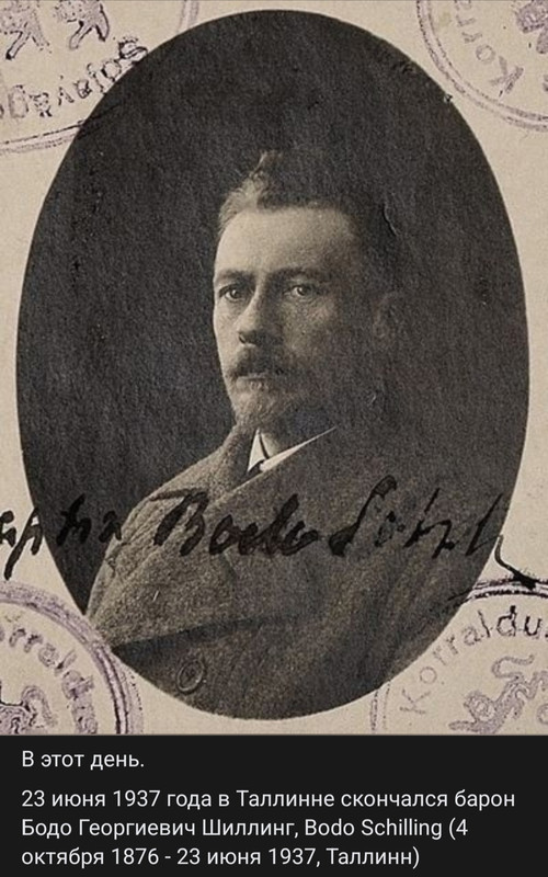 23 июня 1937 года в Таллинне скончался барон Бодо Георгиевич Шиллинг, Bodo Schilling (4 октября 1876 - 23 июня 1937, Таллинн)