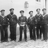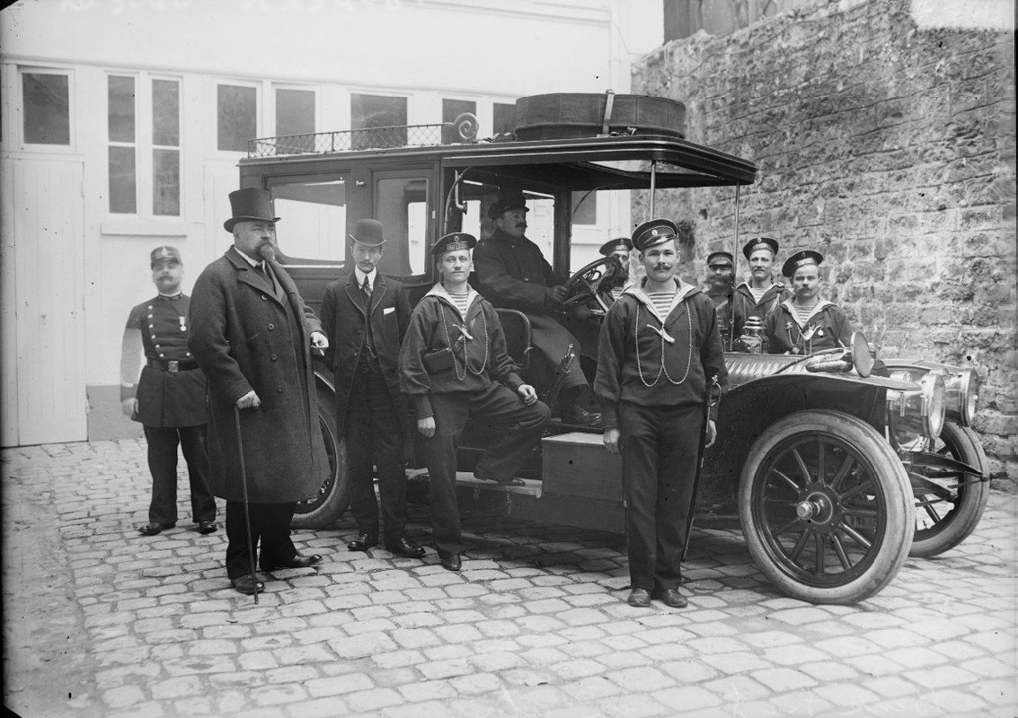Фотография сделана в Париже 17.11.1908 г. (04.11.1908 г. по старому стилю). На ней почетный караул, который на следующий день сопровождал катафалк с умершим великим князем Алексеем Александровичем на вокзал для следования в Россию.