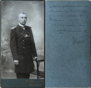 Может, инженер-механик Сакс Вадим Владимирович? По состоянию на конец 1906 г., уже после производства в капитаны КИМ, но еще до награждения Владимиром 4 с мечами и бантом.