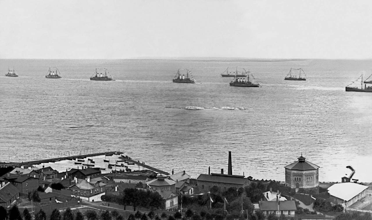 Рейд Кристиании, 1901 г. броненосцы береговой обороны HNoMS Eidsvold (тип Norge) и HNoMS Tordenskjold (головной в серии из 2-х кораблей), а также бронепалубные крейсера HNoMS Frithjof и HNoMS Viking