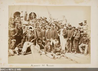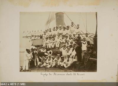 Броненосный крейсер Cristóbal Colón во время приёмки корабля командой. Генуя. Май 1897 года. Командир крейсера Cristóbal Colón Emilio Díaz-Moreu. Командный состав крейсера Cristóbal Colón.