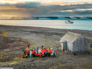Дорогого юбиляра - "Кортик"- с большущим Юбилеем!!!!!! Увы, только мысленно, - с вами, на вашей встрече!!! В Ленинграде - СПб, увы, уже лет 8 не была... а очень хотелось бы... Ваш Питер, - он такой красивый!!! Не то, что наша Москва... теперь стала.. небоскребно- стеклянно-металлическая.. П-та, поместите фото вашей - нашей юбилейно-новогодней встречи... (на снимке группа экспедиции на ЗФИ 2025г (см меня- с крсным флагом, у домика Эйры на острове Белл ЗФИ )